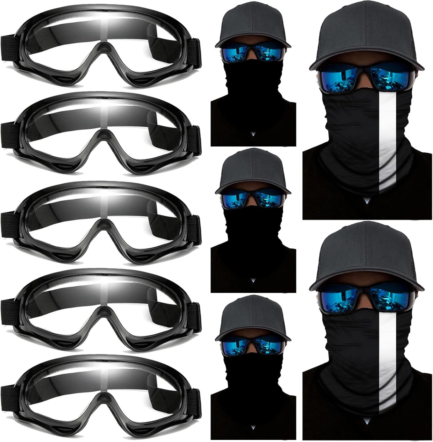 Package Includes: Each 10 pack motorcycle accessories set includes 5 pack clear protective goggles and 5P comfortable face masks. Face mask includes 2 styles materials: ice silk materials or polyester materials, choose what you want from the size option.