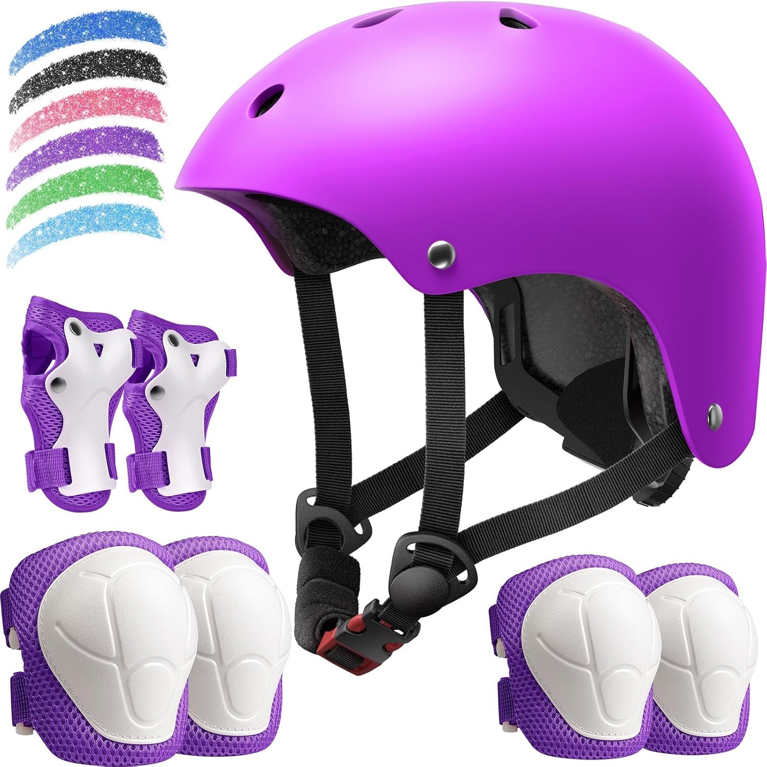 Kids Bike Helmet Set, Adjustable Helmet for Ages 2-3-5-8-14 Year Boys Girls, Toddler Pad Set with Knee and Elbow Pads for Bike, Roller, Skating, Scooter, Longboard and More Sports, 6 Color