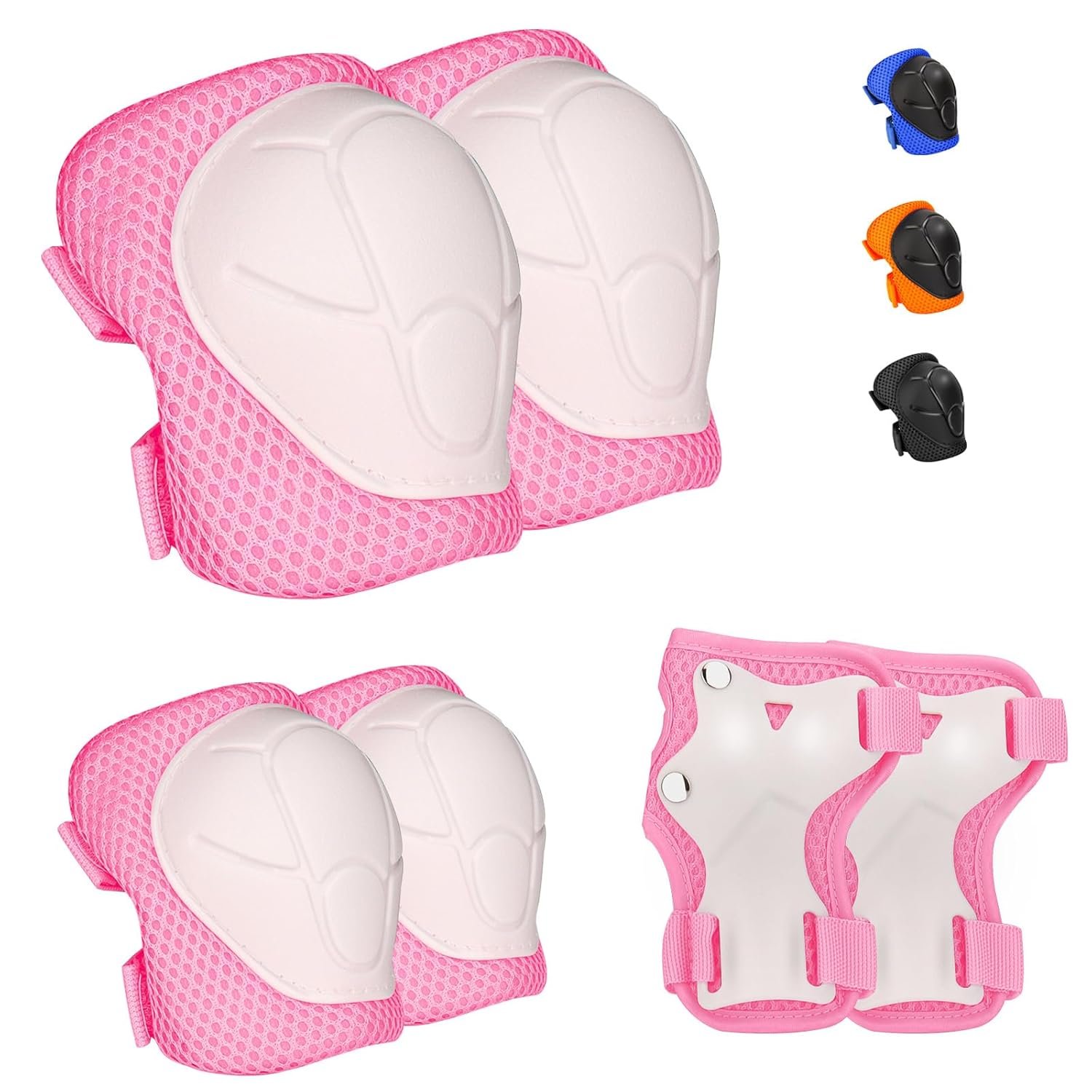 Kids Protective Gear Set – Knee Pads Elbow Pads with Wrist Guards for Ages 3-12 | 3-in-1 Safety Protective Gear for Skating, Cycling, Biking, Roller Skates, Scooters (Pink, ‎S(3-7Years))
