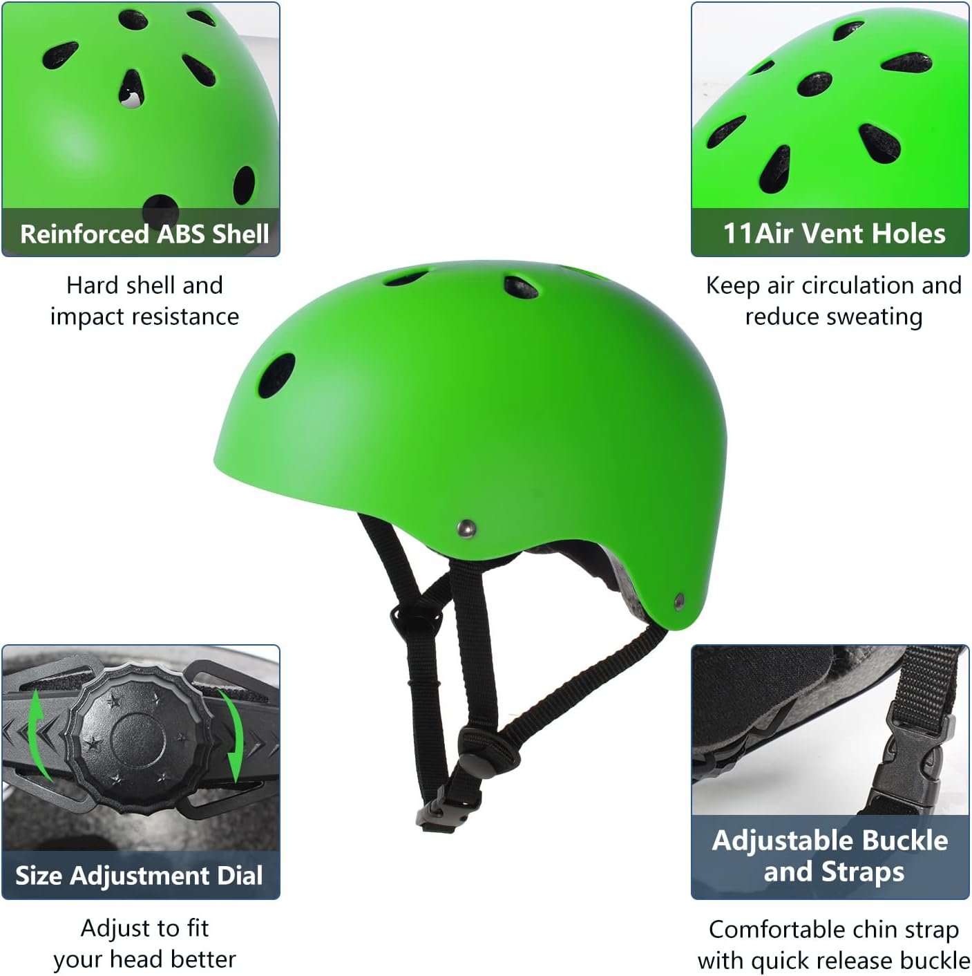 • 11 STRATEGICALLY PLACED VENTS—As designed with multiple vents, special aerodynamic design and breathable foam, the skate helmets help reduce sweating and keep feel cool even during intense body movement